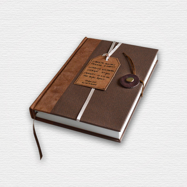 Cuaderno cosido y pegada a mano con materiales de calidad.