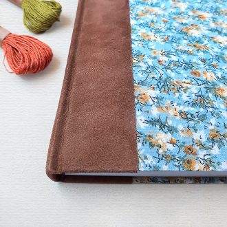Libreta cosida y pegada a mano. Tapas cubiertas con tela de algodón.