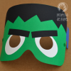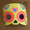 Máscaras para niños hechas de papel, con ojetillos para asegurar el amarre del elástico.