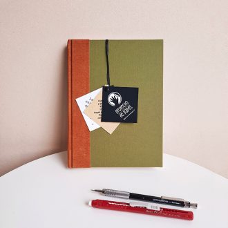 Libreta cosida y pegada a mano.
